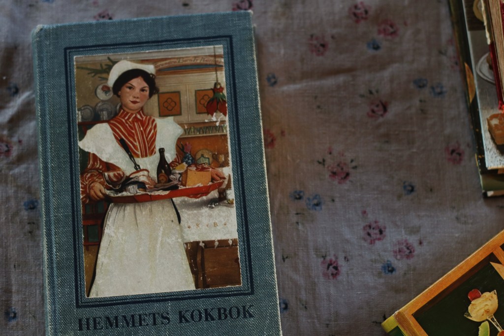 Jag älskar kokböcker, och går aldrig förbi den hyllan när jag är på loppis. Framförallt är det de allra äldsta böckerna som jag dras till, som är slitna, använda och innehåller recept utan bilder och egentligen utan några längre instruktioner, som det var förr. Men jag plockar också på min 70-tals böcker, eller sådana som har speciella inriktningar. Så detta har ju lett till att jag fått ett par stycken i min samling, så att säga.
