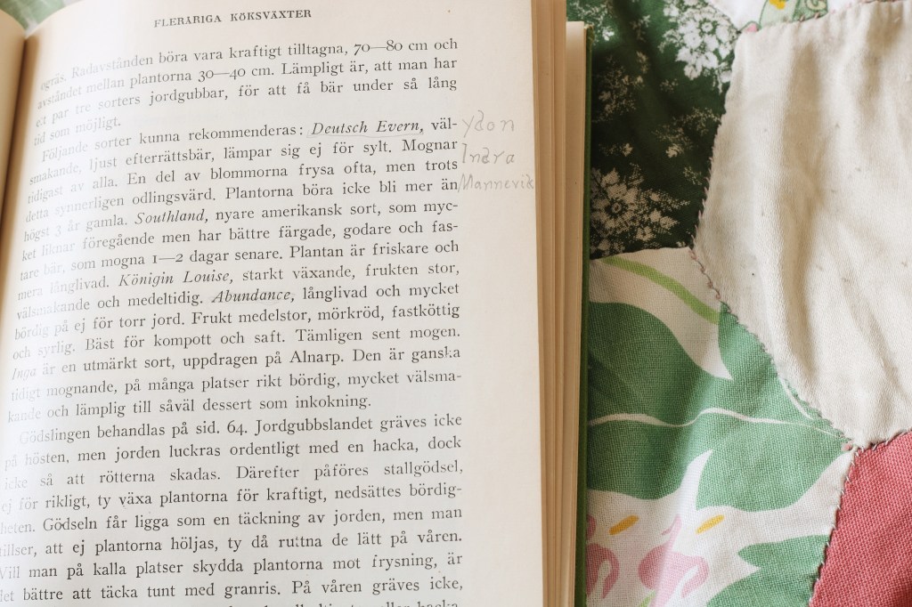 Och lite överallt har han med sin stadiga hand lämnat lite kommentarer. Här har han fyllt i ett namn på en jordgubbsort exempelvis, som tydligen icke får glömmas.