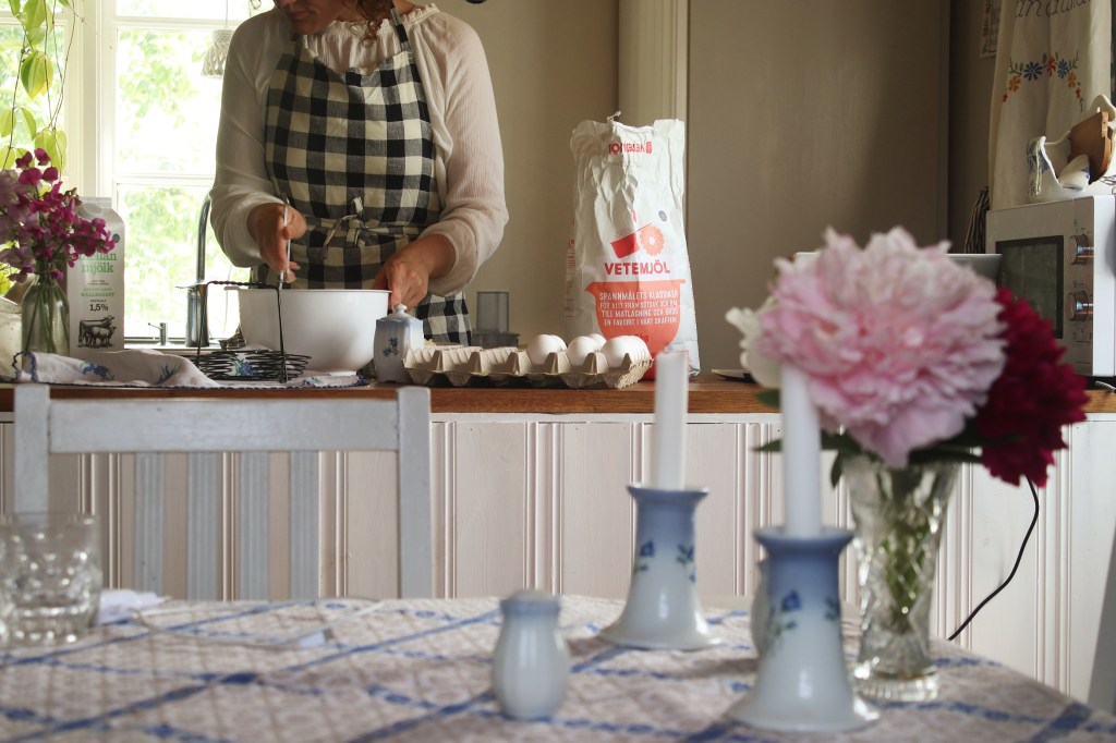 Då passar jag på att slå i alla kok- och bakböcker jag samlat på mig, letar bland bildlösa recept efter intressanta namn, eller ingredienser som passar både lust och skafferiinnehåll. Bläddrar, funderar och överväger alternativ. Bakar någon gammal favorit, eller provar någonting helt nytt. Ibland framgångsrikt, oftast gott, och totalt misslyckat och inte ens ätbart. Det roliga i att prova runt!