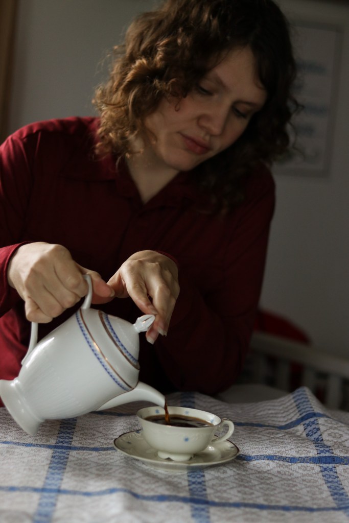 Jag är en riktig kaffedrickare, inte i mängden jag intar men i njutningen av hela processen. Det bästa kaffet drickes ur små porslinskoppar, med riktigt hett kaffe och en stor skvätt mjölk i. Kaffet avnjutes bäst i en tidig morgontimma, helt ensam med enbart mina egna tankar. Sedan är kaffe även en härlig sällskapsdryck, men det är inte då jag uppskattar det som mest. Utan det är själv, helst i mörkret före alla andra vaknar.