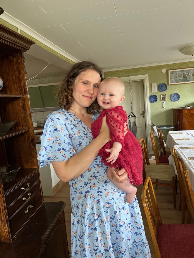 På tal om det där mammahjärtat så har hjärtat det rätt fint, tackar som frågar. Jag känner fortfarande mig lugn i mammarollen, glad och relativt tillfreds med livet i stort. Visst känner jag mig också lite skör stundtals, och som att jag ska somna ståendes. Ibland tänker jag att jag är väldigt mycket mer samlad som mamma än jag kunnat tro, vilket ofta direkt motbevisas. Jag är livrädd fortfarande för att det ska hända henne något, bland annat varför det där med att sova i eget rum är så jobbigt. Egentligen vet jag ju att jag har en stark unge som inte skulle lägga sig platt och kvävas när hon sover, skulle sätta vanlig puré i halsen eller ramla ner från stolar eller soffor där hon sitter övervakad. Samtidigt så finns tankarna där hela tiden, och även om det känns som jag oftast tar dem med ro, så bryter jag bokstavligen ihop när det händer henne något. Jag råkade, när jag i snabbt skulle stoppa in henne i selen, slå hennes huvud i taklampan för någon månad sedan. Allt gick fint, och förutom att hon blev ledsen så märktes absolut ingenting. Men oj så jag oroade mig, och mådde dåligt å mina egna vägnar att jag gjort något så fruktansvärt. Det verkar dock som att denna oro är något man får med sig på köpet med sina barn, så en ny del av livet jag försöker vänja mig in med. Som en övertänkande person, är det inte så där väldigt enkelt, men jag är glad så länge det inte påverkar min vardag med än som tankar på detta sätt.