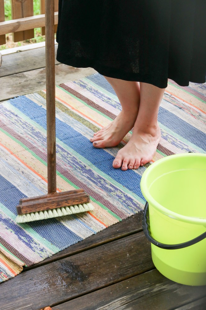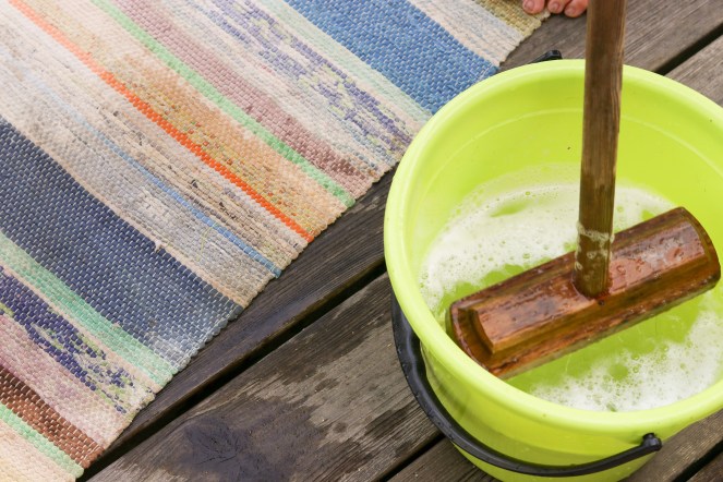 Skura trasmattorna är ju det gamla traditionella sättet att göra det på. Den som har tur har en brygga vid vattnet att skura mattorna på, det är förstås en riktig lyx, men det går lika bra att tvätta dina mattor på badrumsgolvet, eller ute på till exempel en trall, altan eller något annat ställe som tål vatten rätt bra. För det kommer bli blött!