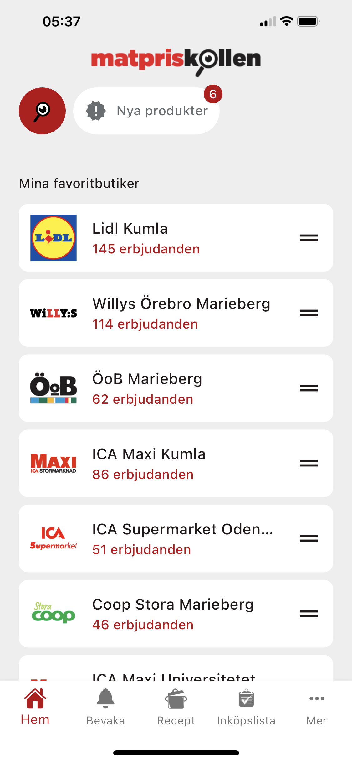 Jag är en sådan som grundligt går genom veckans erbjudanden varje måndag. Ser över erbjudandena på alla av mina vanliga butiker, skriver upp vad de bästa klippen är, jämför mellan butiker och efter det planerar vilken butik jag ska handla på denna vecka. Eftersom jag är intresserad av matpriser och så har jag lärt mig att ha rätt bra koll på vad normalt pris är, och vad ett bra erbjudande är. Jag har favoritmarkerat mina främsta butiker i appen Matpriskollen. En app som är enkel att navigera och använda. Tips!
